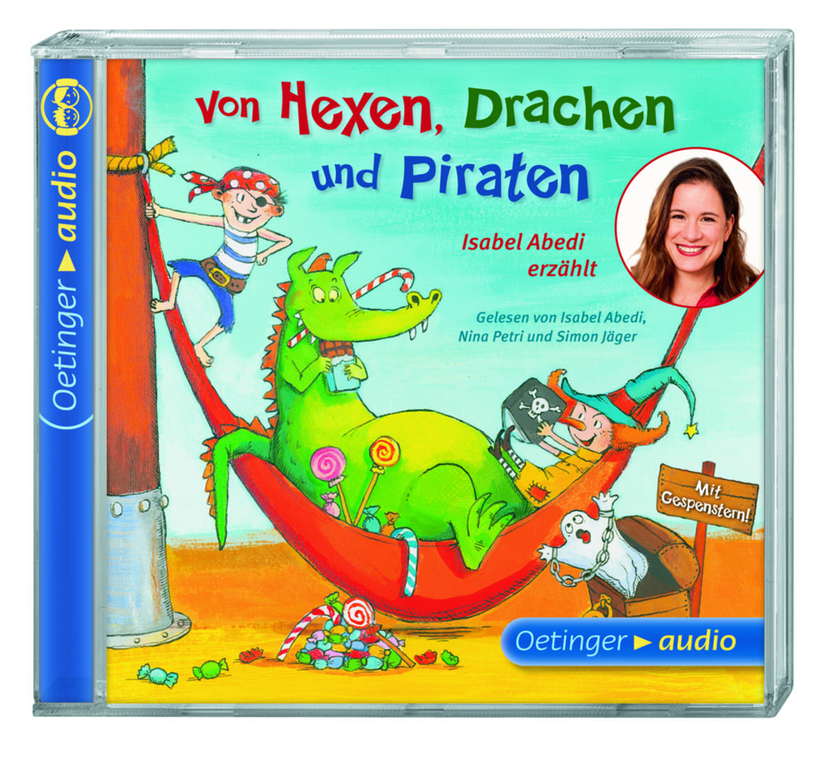 Autorin Isabel Abedi erzählt von Hexen, Drachen, Piraten und außerdem von Gespenstern und Baumtrollen. Eine wunderschöne Geschichtensammlung, die Abedi hier aus 12 ihrer Erzählungen zusammengestellt hat. Eine wunderbar fantastische Unterhaltung im Hörbuchformat mit einer Prise Humor. Man begegnet blauen und gelben Drachen, Drachentötern und dem Drachenjungen Drakolo, der wegen Zahnschmerzen zum Zahnarzt muss. Es geht mit Kapitän Tigerzahn aufs offene Meer und man lauscht von den sieben Piraten vom protzigen Pottwal, die eine Schatzkiste voller Büchern finden. Wir lernen Seegespenster kennen und das Gespenst Kurt, der seinen Kopf immer wieder vergisst. Wir begleiten Gespenst Samuel bei der Spukprüfung und lernen, dass kleine Gespenster wie Hubert auch Angst haben können. Zuletzt gibt es was von Hexen zu hören. Da treffen wir auf Druida, die sich eine Hexenhund wünscht, von Laluna der Mondhexe, die für die Träume der Hexenkinder zuständig ist und von der überbehüteten Mirabella, die schließlich einem Baumtroll begegnet. Wirklich liebenswerte Episoden, an denen kleine Hörer viel Freude haben werden. Von fantastisch, faszinierend und abenteuerlich bis gruselig, ist für viel Hörspaß gesorgt. Das auch nicht zuletzt wegen der guten Sprecher und der vortrefflichen Musik. Vorgetragen von Simon Jäger, Nina Petri und Isabel Abedi selbst. (vo)